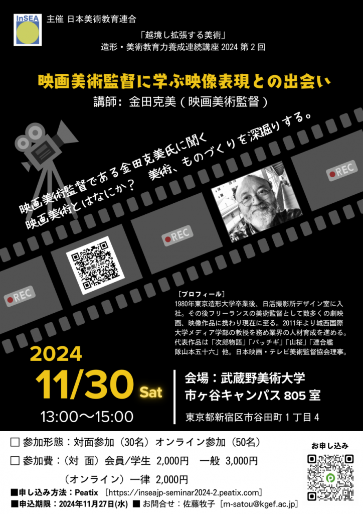 本講座では、映画の美術監督である金田氏から、映画美術についての具体的な解説とともに、「美術」「ものづくり」について多面的なお話しをいただくことで、造形・美術教育の概念を拡張する糸口を探りたい。