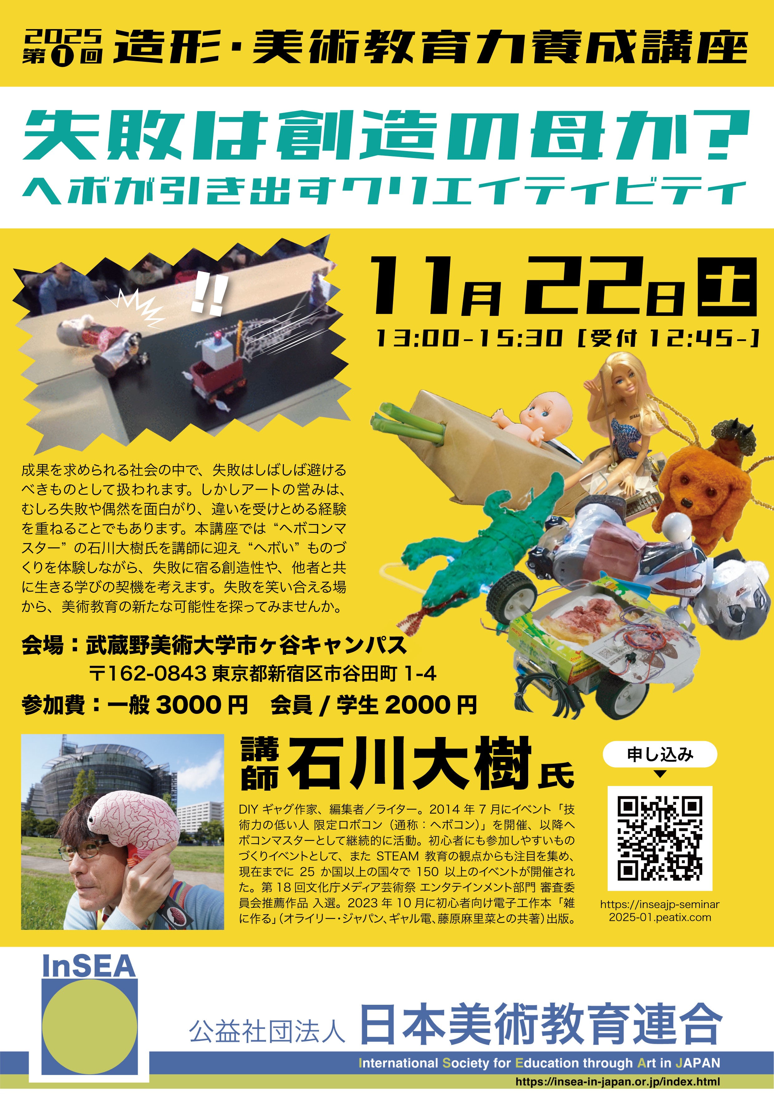 「造形・美術教育力養成講座2025」第1回のご案内 2025年11月22日(土)13:00-15:30「失敗は創造の母か?ヘボが引き出すクリエイティビティ」